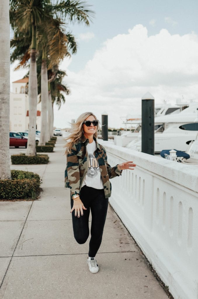 If you haven’t already noticed, I love a good GRAPHIC TEE. Honestly, I think they are one of the easiest pieces to throw on with some leggings and tennis shoes. And you can totally change up your look with a sweater, jacket, or denim. And one of my favorite ways to wear a graphic tee is with a skirt. But lately the weather has cooled off and a chunky sweater over a tee has been my choice. Because by noon us Floridians are peeling off our layers. A graphic tee has been one of my go-tos lately. In fact, I thought to myself, I really need to change this up a bit. But then I am like NO! I love it. And if I could, I would probably but 10 more tees tomorrow.