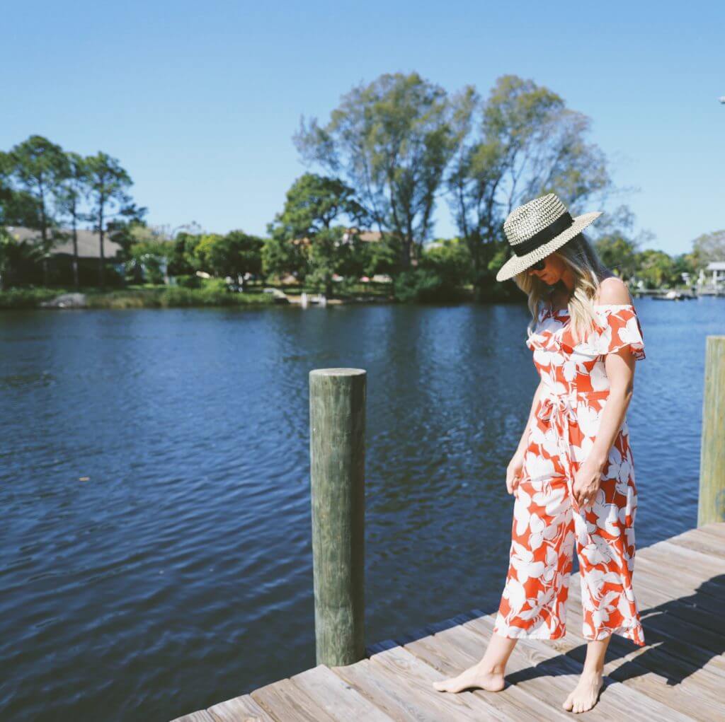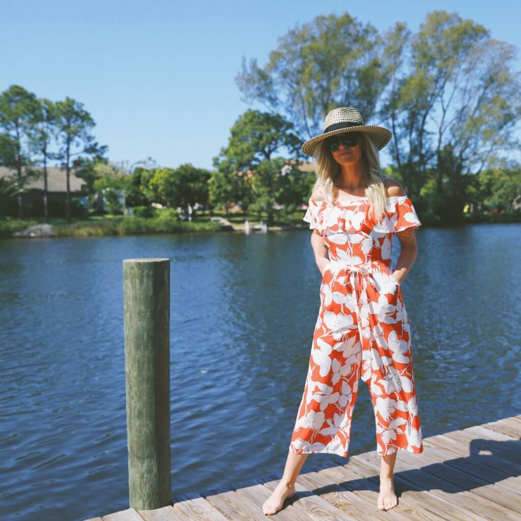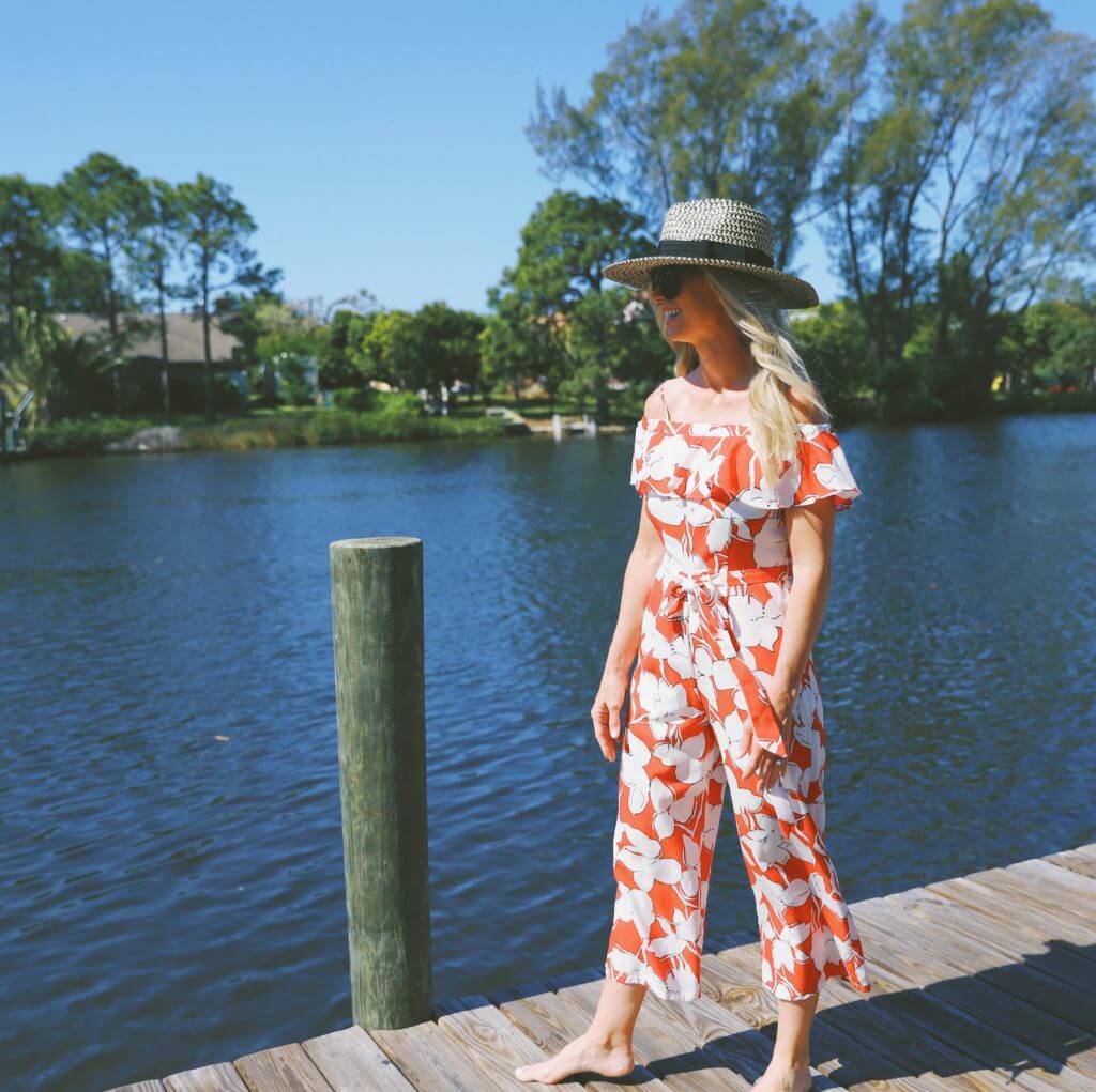 Nothing screams spring like ruffles, floral, and jumpsuit! This fun bright red J.O.A FLORAL JUMPSUIT comes at an amazing price…which is another plus. Shop more jumpsuits and sun hats perfect for spring all the way into summer below: